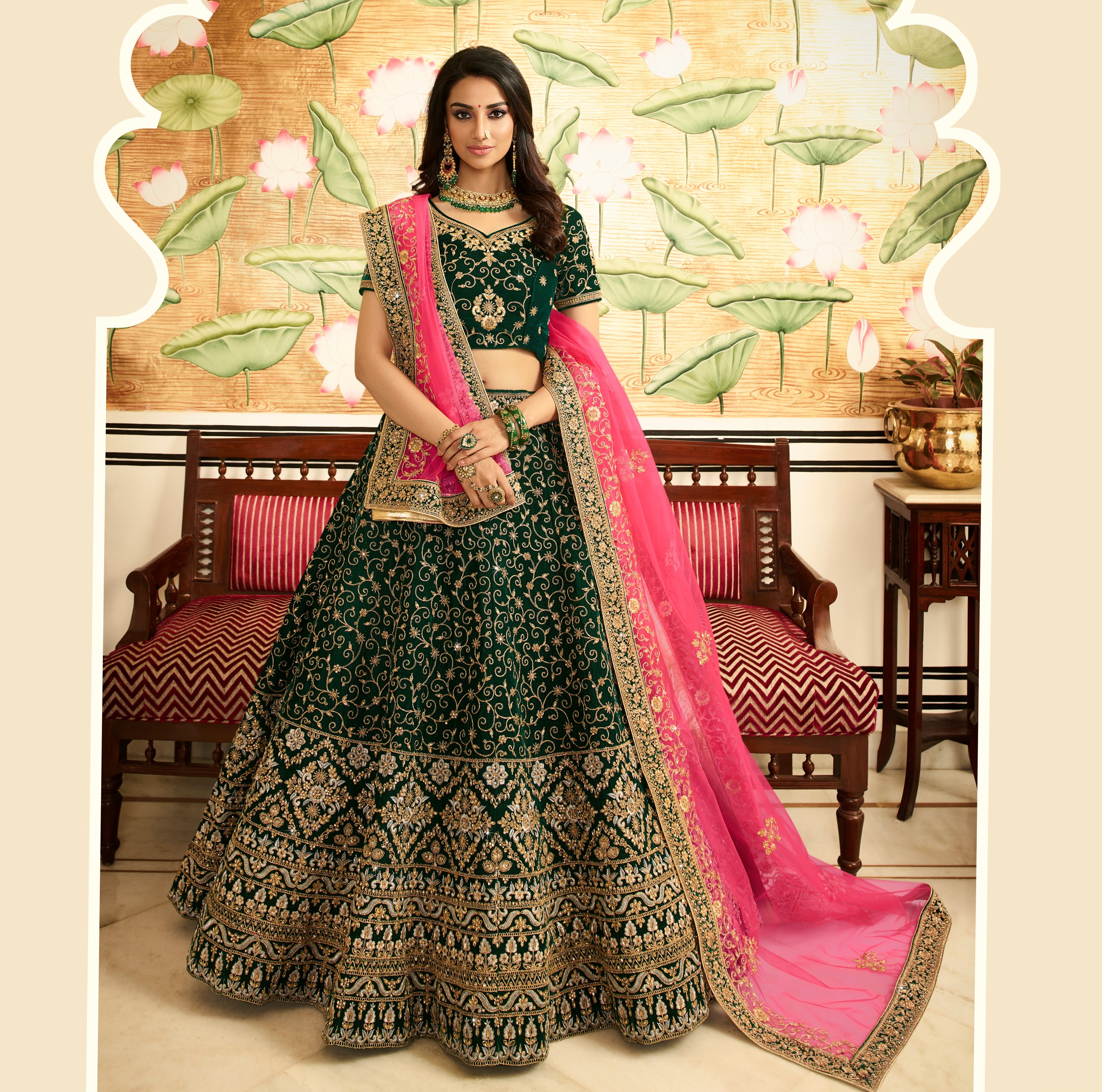 Quick Overview : B.GREEN LEHENGHA WITH PEACH DUPATTA